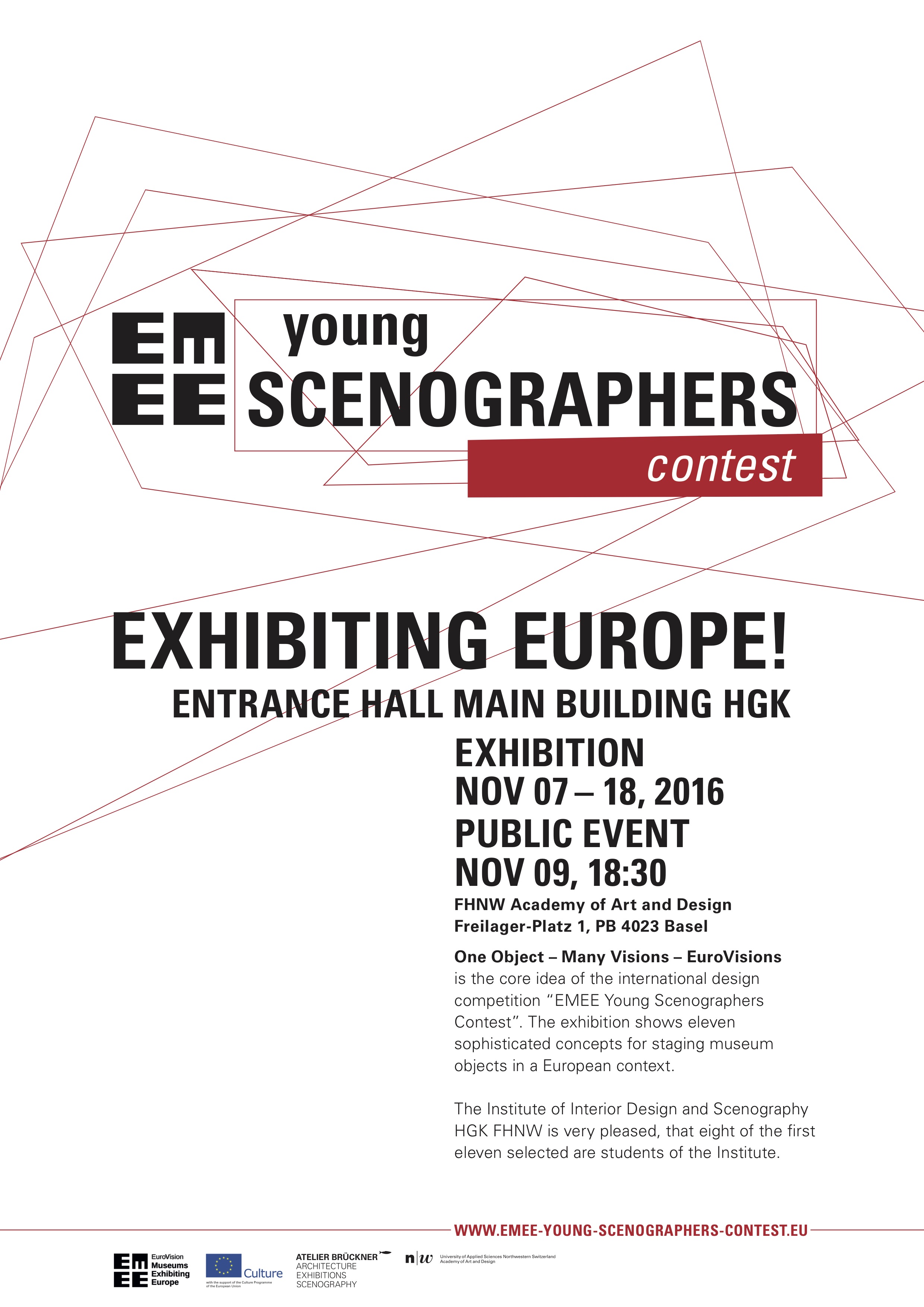 Die Wanderausstellung «EMEE Young Scenographers Contest» wurde in Kooperation mit EuroVision – Museums Exhibiting Europe (EMEE) und dem Institut Innenarchitektur und Szenografie HGK FHNW in Basel gezeigt.
